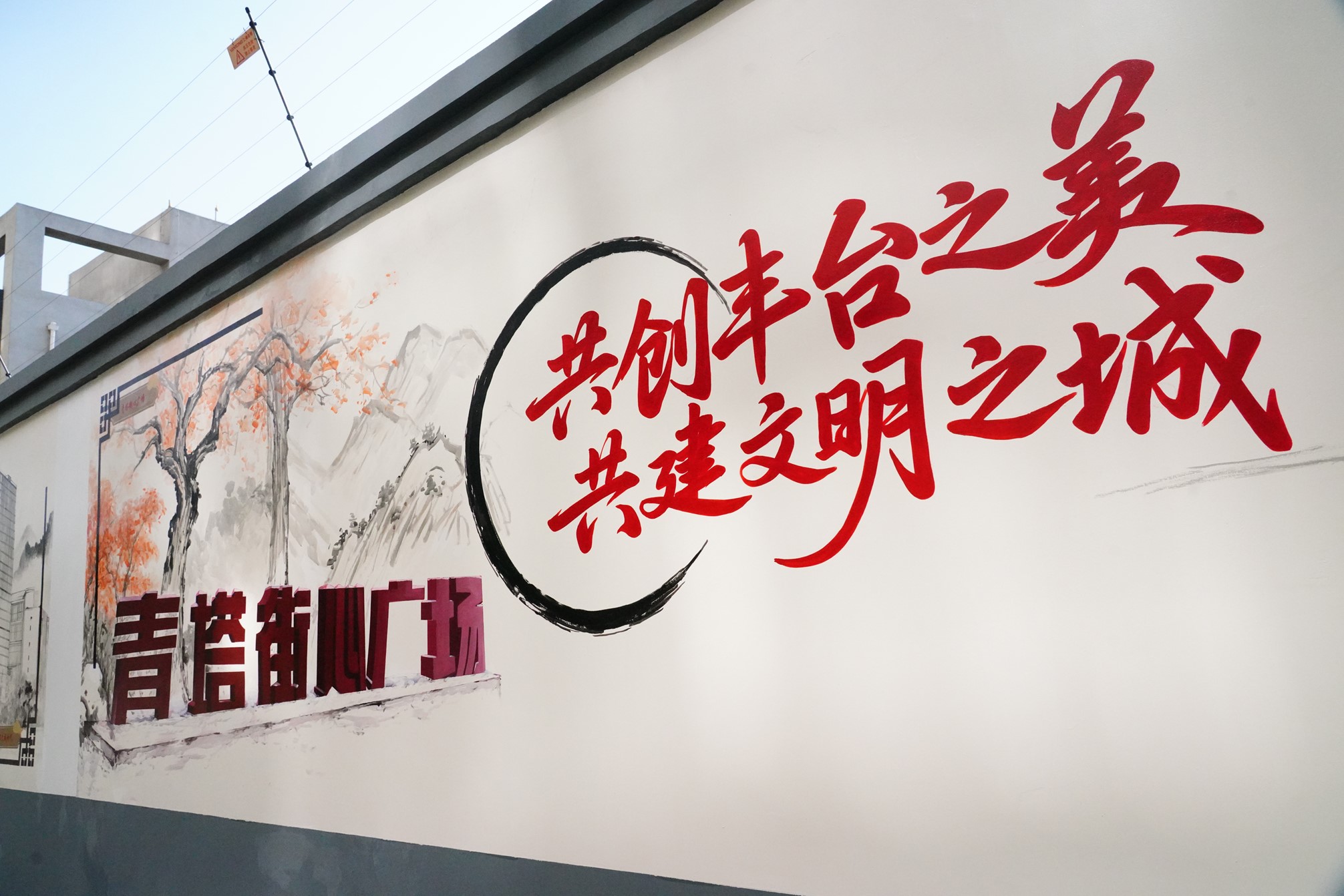 现如今港陆证券,岳各庄北街南侧,一道精心绘制的文化长廊已然展开,画笔既追溯着丰台的历史年轮,也收录着青塔的地标图景,将它们共同绘画在这百米画卷中。