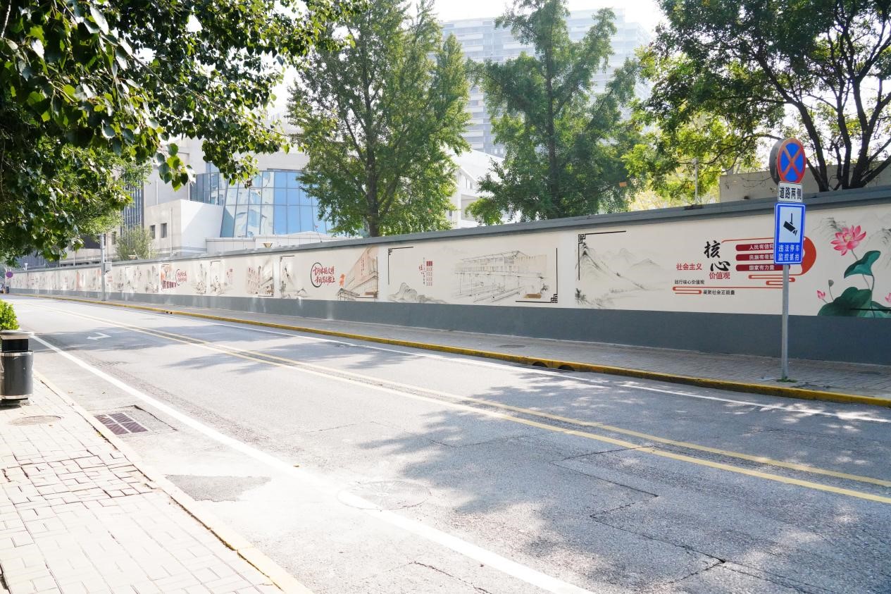 行走至此,十二个社会主义核心价值观关键词与“文明礼让”“和谐共建”等生活化标语错落有致地交替呈现,形成独特的视觉韵律,让行走至此的人们体验到浓厚的生活气息。当“爱国”与卢沟桥的沧桑石狮并肩,“敬业”与天利大厦的现代轮廓相映,“和谐”化作郑常庄公园里晨练老人的笑脸,“友善”融入街心广场上孩童嬉戏的身影——价值理念即刻变得可触可感。每一幅画面都是理念与生活的诗意相遇,在不经意间完成了一场与文明的对话。