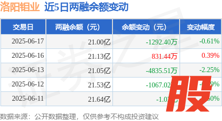 本站消息科云汇,6月17日,洛阳钼业(603993)融资买入7391.0万元,融资偿还8600.54万元,融资净卖出1209.54万元,融资余额20.91亿元。